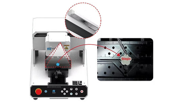Magicシリーズは、Windows搭載のパソコンがあればすぐ使い始められます。付属のMagicEngraveをインストールしていただければ、自由なレイアウト・フォント・マークなどを使用して簡単に彫刻することができます。接続はUSBケーブル1本を本体につなぐだけなので、とっても簡単。機械本体が小型なので場所もとりません。