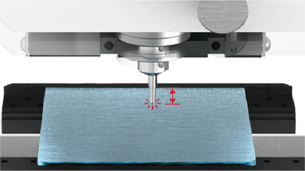 高さ調整センサーを標準装備。センサーが、彫るワークの厚みを自動で判別。4点ポジションでの高さ調整も可能です。ツールチェンジセンサーも搭載しており、先端工具の高さも自動で測定。