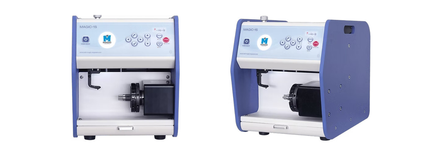 MAGIC-1Sは、指輪の内・外側にケガキ彫刻ができる彫刻機です。指輪に彫刻するため、回転クランプや使いやすい機能を搭載しています。