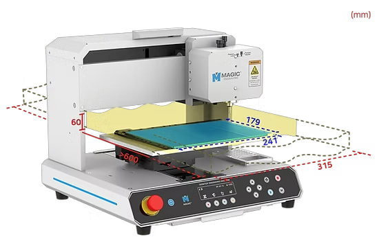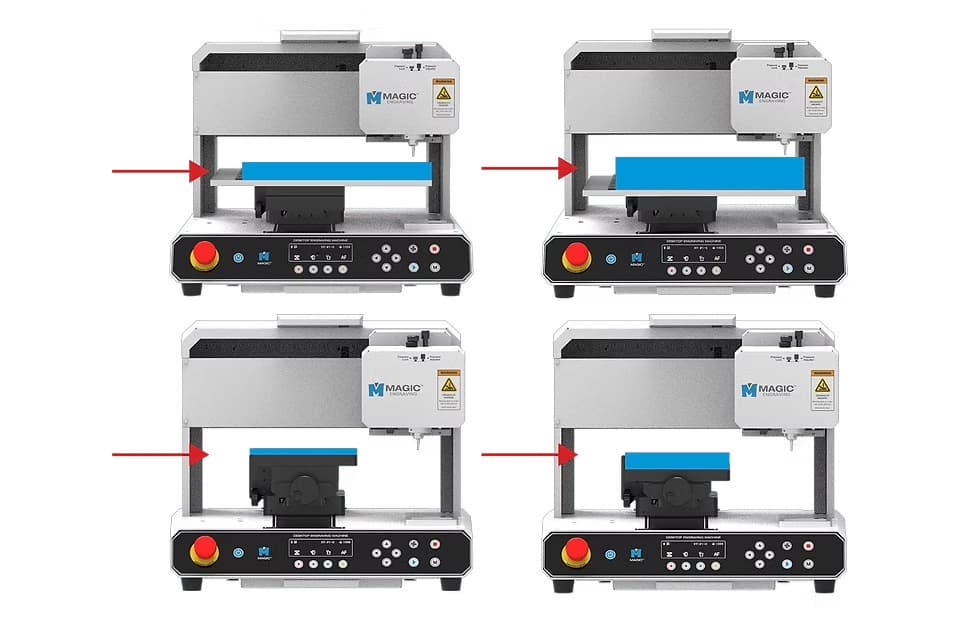 MAGIC-E4 は、形状やサイズの異なるさまざまな平面素材へのケガキ彫刻・切削彫刻・切断が可能です。