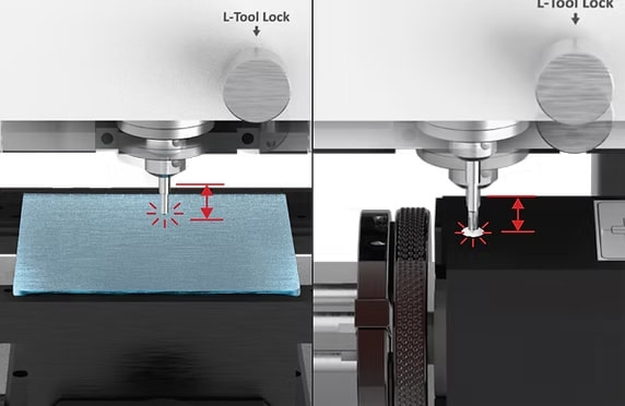 ※従来のコレット方式の彫刻機は、手動で刃先の長さを認識させる必要がありました。