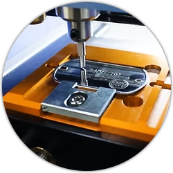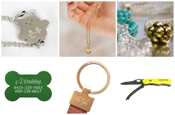 ダイヤモンドチップなどで材料を引っ掻いて、文字、ロゴ、模様、写真などを彫刻します。