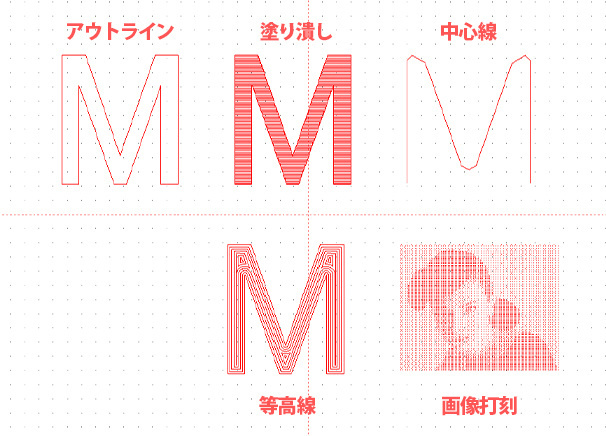ダイヤモンドチップなどで材料を引っ掻いて、文字、ロゴ、模様、写真などを彫刻します。